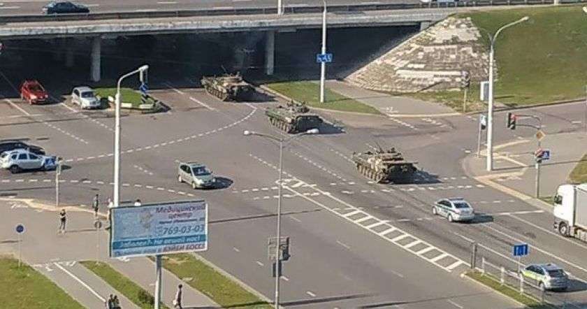 «Режим Лукашенко впервые применил бронетранспортеры БМП-2 против населения Белоруссии. Всё ещё „только“ в качестве сдерживающего фактора, но вечер в Минске ещё только начался… Колонна белорусской армии в составе не менее 12 боевых машин пехоты БМП-2 появилась в центре Минска, чтобы подавить мирных протестующих против Лукашенко».