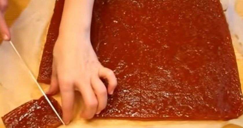 - После этого, мармелад должен постоять ночь. Если при нажатии на него ты почувствуешь сверху корку, а внизу мягкую массу, помести мармелад снова в духовку на 2 часа, а после еще раз оставь стоять на ночь. Сушить его нужно до тех пор, пока ты не будешь ощущать под пальцами плотную равномерную консистенцию. При необходимости переворачивай пласт в процессе сушки.