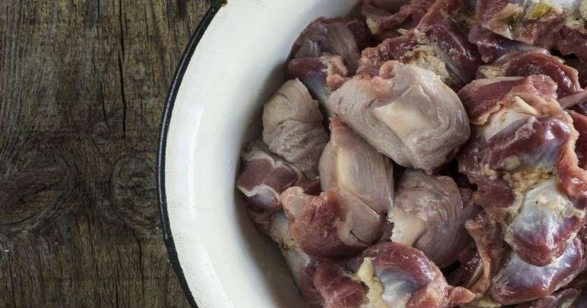 - Вымой желудки под проточной водой. Удали желтую пленку. Сделать субпродукты нежными и удалить горечь поможет вымачивание в холодном молоке.