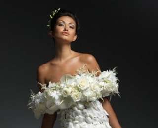 А тем, кто не хочет эпатажа, а хочет просто естественной красоты, модные дизайнеры предлагают восхитительные свадебные наряды из живых цветов. Невеста в таком платье будет великолепна и индивидуальна.