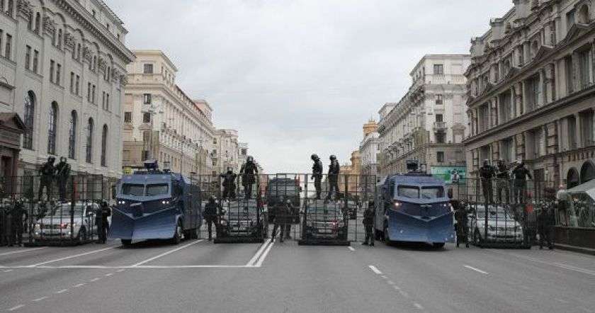 От Дворца независимости отъехали водометы, которые ранее перегородили проспект Победителей. Сняты металлические ограждения и колючая проволока. По информации ТАСС, покинули территорию и БТР, которые ранее были подтянуты ко входу в резиденцию.