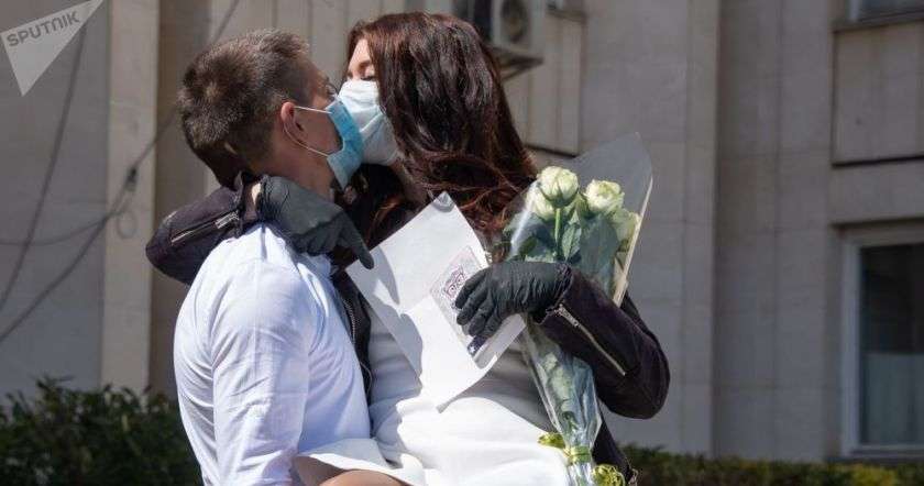 Один из стражей порядка, набравшись смелости, в буквальном смысле слова просунул голову между целующимися голубками и сделал замечание: целоваться без масок нельзя. Воображения не хватает на то, чтобы представить, как целоваться в масках, но это, видимо, не важно. После устного замечания полицейский, как полагается галантному мужчине, решил оставить в покое даму и по-рыцарски предложил молодому человеку составить протокол только на него.
