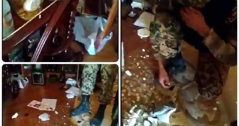 Азербайджанские бандиты в униформе армии агрессора грабят квартиры людей на одной из оккупированных территорий Арцаха, даже разбили детскую копилку.