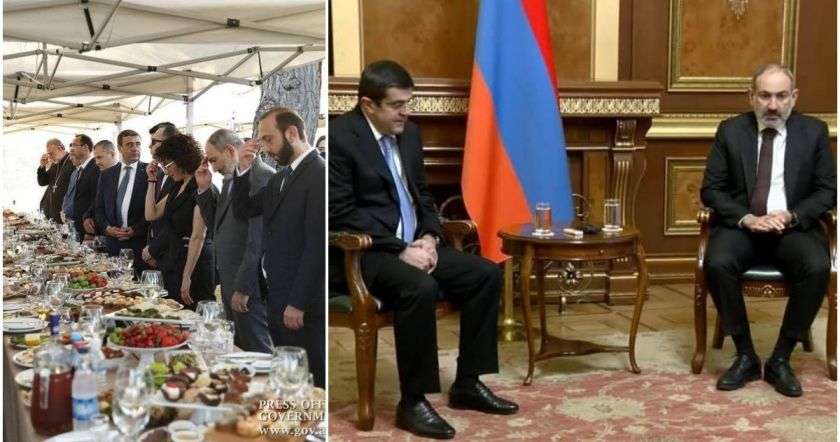 Разница во времени между этими фотографиями - пол года... Одна сделана в день инаугурации Араика в Шуши, другая сегодня, после капитуляции.