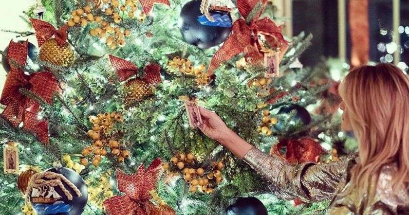 Помимо фотографий, на которых Мелания позировала в рубашке оттенка металлик и юбке-карандаше, в соцсетях появился видео-тур по резиденции президента США. Так, в прихожей Трамп решила установить несколько рождественских елей со сверкающими огнями.
