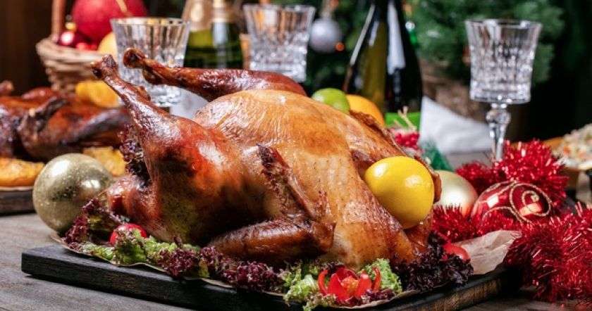 За 30 минут до окончания снимите фольгу. Затем увеличьте температуру до 200 градусов и запекайте, пока индейка не покроется золотисто-коричневой и хрустящей.