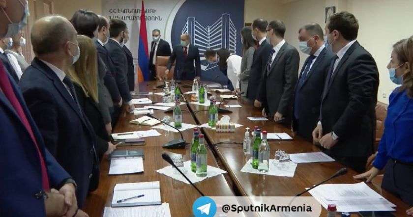 Начало совещания в Министерстве экономики. Как минимум 13 человек стоя приветствуют Премьера, выказывая таким образом уважение . Напомним, что Премьер-министр в годы своего недолгого правления увеличил внешний долг страны почти на 1,5 млрд $, уронил экономику минимум на 7%, повинен в гибели более 5000 молодых людей в возрасте 18-20 лет, подписал позорную капитуляцию, по которой врагу отошло более 10 000 кв километров земель с заводами, пахотным черноземом, ГРЭС и т.д. , инвестиции только в 2019 году сократились в 3 раза. Премьер-министр за 3 года своего правления не смог воплотить ни один значимый инвестиционный проект. В Армении начался сильный отток населения, который больше похож на бегство, что так же отразится на экономике. По какой причине встали, уважаемые экономисты?