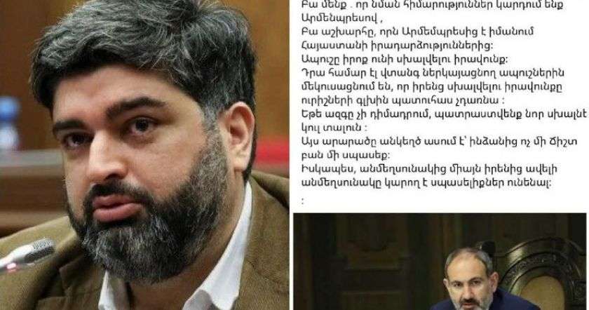 «Это существо искренне говорит: Не ждите от меня ничего правильного. Действительно, только невменяемый может может ожидать чего-то большего от невменяемого - написал о Николе Пашиняне отец его соратника