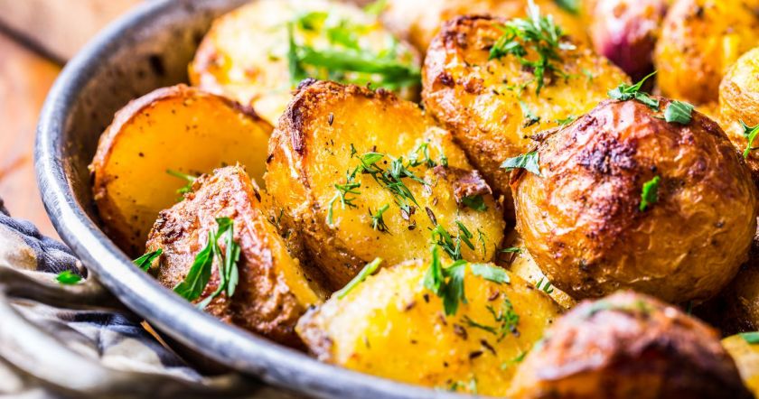 С травами дело обстоит иначе. Если вы используете более крепкие стебли, такие как розмарин или тимьян, можно добавить их в начале процесса приготовления. Зелень, петрушку, укроп или базилик, что понятно, используем, когда картошка пожарилась.
