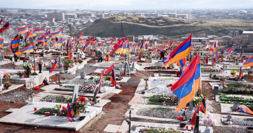 Сегодня утром военное и политическое руководство Армении вновь посетило воинское кладбище Ераблур. Поводом было почтение памяти 75 солдат, павших в 4-х дневной войне 2016 года. Самое оруэлловское в этом то, что кладбище посетили виновные в смерти около 10 000 погибших и пропавших без вести.