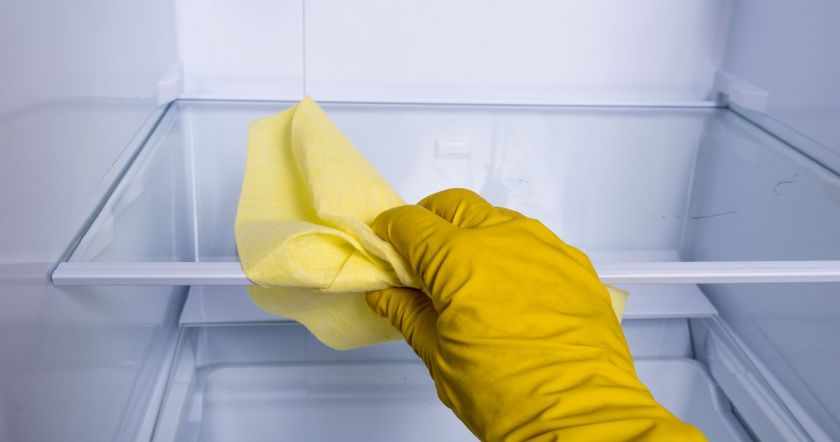 Съемные полочки и другие пластиковые детали замочите на несколько часов или на ночь в растворе моющего средства для посуды и теплой воды. Или же обильно смочите их этим средством и оставьте, чтобы откисали.