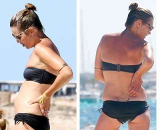 39-летняя британская модель Кейт Мосс зимой этого года отметит юбилей. И к этой дате она рискует подойти не в самой лучшей форме. На выходных испанские папарацци сфотографировали звезду на пляже – на фотографиях заметно, как округлился живот и раздались бока модели.