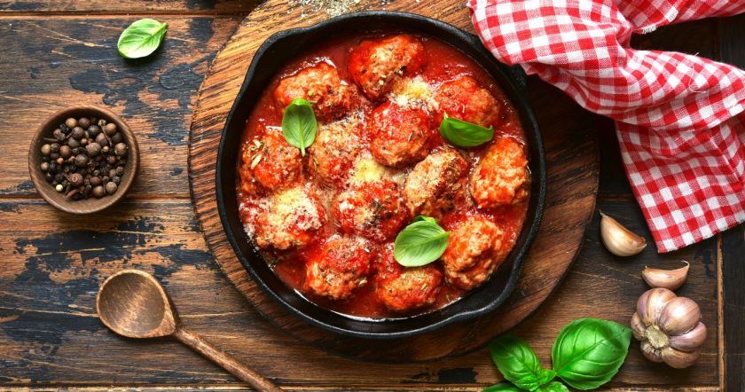 Фарш выбирайте на свой вкус, но вот томатный соус к ним нужен обязательно. Польпетте в нем нужно будет протушить. Плюс – сыр пармезан, его потребуется немного. Подавать итальянские фрикадельки можно с овощами или пастой.