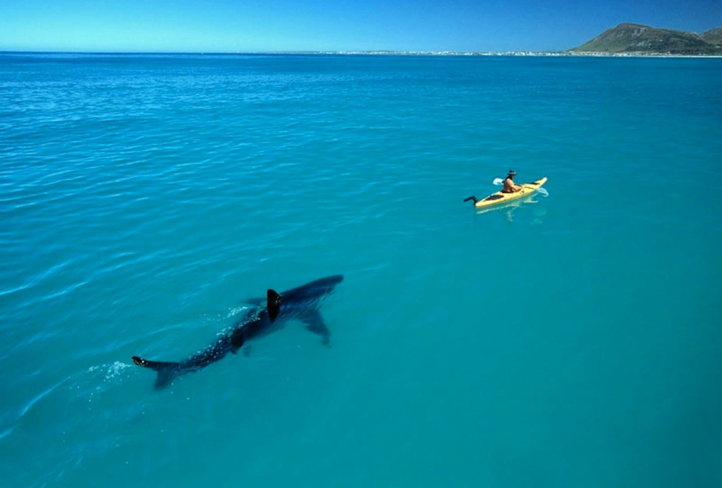 В сентябре 2005 года журнал Africa Geographic опубликовал снимки больших белых акул у побережья Южной Африки. Среди них оказался и этот, где 4-х метровая хищница преследует байдарку.
