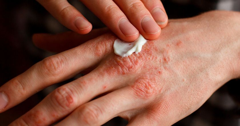 Он характеризуется периодическими вспышками четко очерченных красных участков кожи, покрытых серебристыми чешуйками (бляшками). Кожа на движущихся поверхностях (например, на обратной стороне локтя) поражается наиболее часто. Но бляшки от псориаза могут образовываться практически где угодно, включая кожу головы и половые органы.