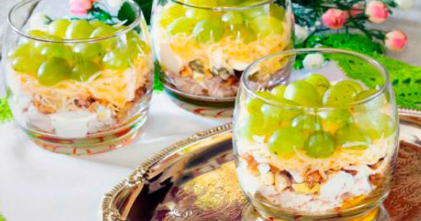 Гениальный салат с виноградом, куриной грудкой и консервированным ананасом. Готовится он очень просто и получается очень вкусным и необычным.