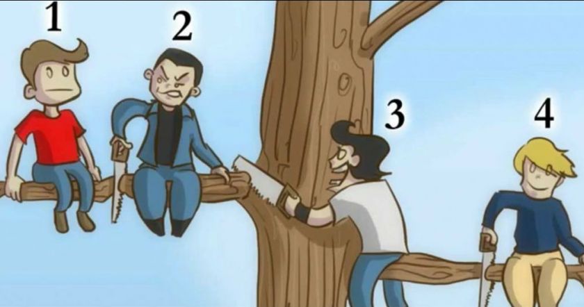 Вы видите изображение четырех человек, сидящих на дереве. Ваша задача - выбрать того, кого вы считаете самым глупым человеком. Подумайте, а затем посмотрите на ответы ниже. Помните, тут нет неправильного ответа!
