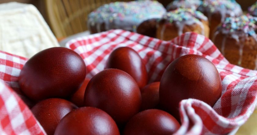 Если в доме есть дети, попробуйте обойтись без химических красителей, выбирая только натуральные – свекольный сок, луковую шелуху, куркуму, ведь красители могут проникнуть в середину яйца и попасть в организм ребенка. Чтобы придать блеска яйцам после окраски, достаточно лишь протереть их растительным маслом.