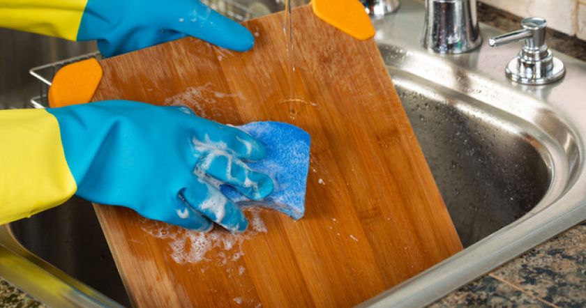 Разделочные доски из натурального дерева признаны самыми гигиеничными (согласно исследованию доктора Дина Клайвера, проведенному в 1995 году). И хотя изделия из дерева нельзя мыть в посудомоечной машине, есть и другие способы эффективной очистки поверхности. В исследовании доктора Клайвера говорится: «Хотя бактерии, которые исчезли с поверхности, все же были найдены в более глубоких слоях дерева через некоторое время после использования разделочной доски, они не активны, не размножаются и в скором времени погибают».