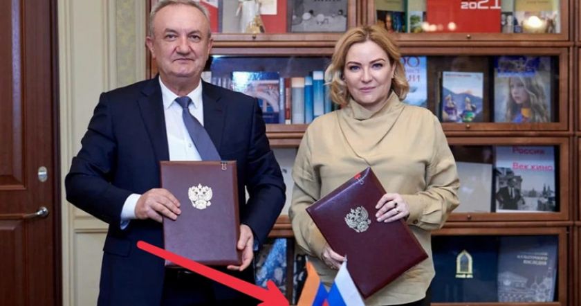 Арцахский экксперт по вопросам безопасности Ален Гулян опубликовал на своей странице в Facebook фотографию со встречи, на которой флаг Армении поставлен в перевернутом виде.