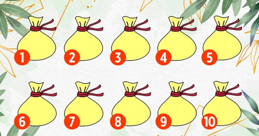 Итак, согласно условию, у нас есть десять мешков с золотыми монетами. В каждом мешке их по десять штук, но в одном из них находятся фальшивки. На вид их никак не отличить, единственное, чем они отличаются от настоящих, — это вес. Фальшивые монеты весят по 11 грамм, когда настоящие лишь по десять.