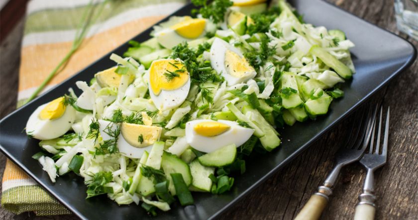 Салат из свежих огурцов и яиц получается легким и вкусным. Его рецепт – очень прост и доступен, а время приготовления занимает менее 30 минут на кухне.