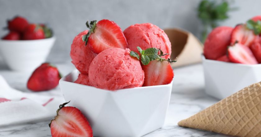 Разлейте клубничный гаспачо по стаканам и украсьте веточкой мяты или мелиссы. Затем добавьте немного сливок для вкуса. Гости будут в восторге.