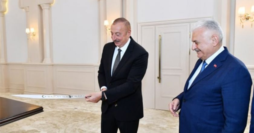 «К поступающим от эрдогановского режима «позитивным» сигналам прибавился еще один: на днях бывший премьер-министр Турции Бинали Йылдырым подарил главарю бакинского варварского режима копию меча османского султана Мехмеда II, завоевавшего Константинополь.