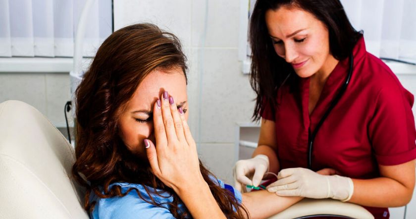Чтобы не потерять сознание из-за понижения давления, врачи рекомендуют прием: как только начинает кружиться голова, сожмите руки и ноги на 10-15 секунд. Так вы повысите давление и снизите риск внезапно упасть в обморок и получить травму. Если приступы гемофобии случаются регулярно, не стоит оттягивать прием у доктора.