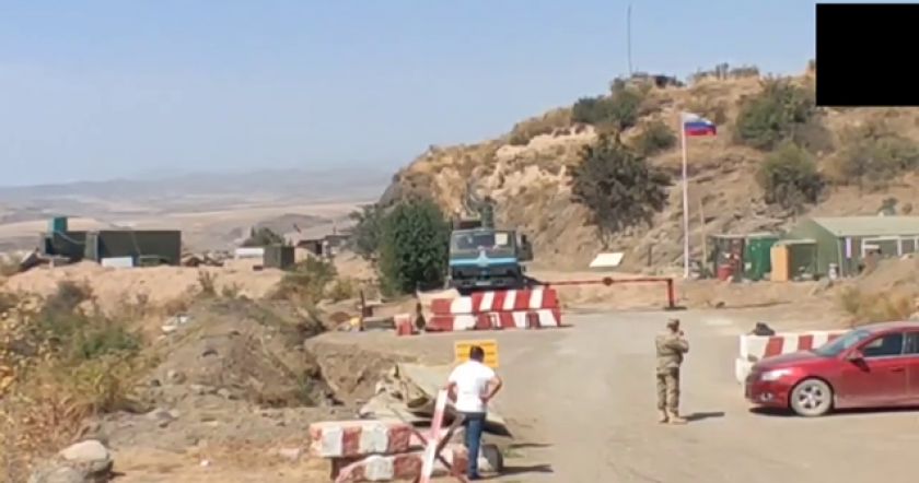 Военные перемещаются на новую дорогу, построенную Азербайджаном в обход Лачина.