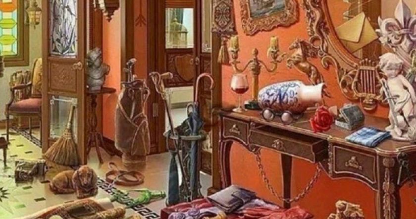 Отыскать в этом беспорядке что-то непросто. Давай начнем с простого — видишь щенка, который лежит на полу?