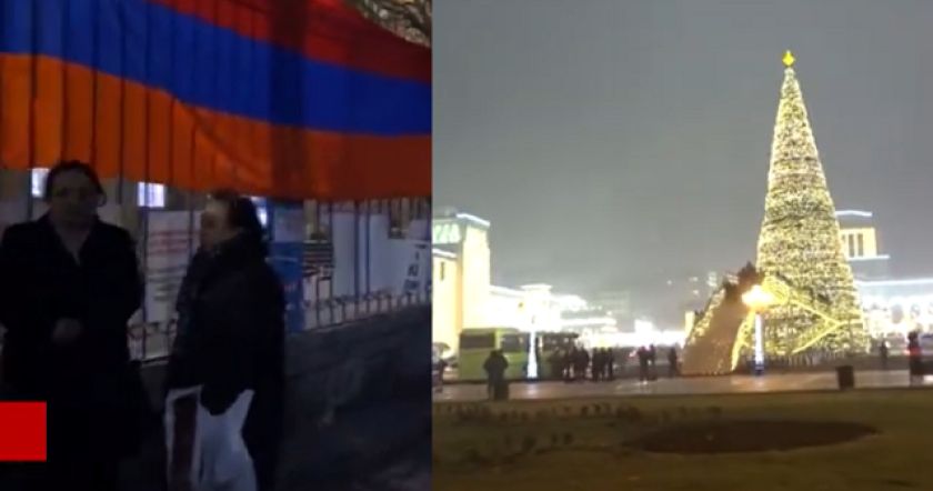 Примечательно, что буквально в нескольких метрах находится Площадь Республики, которая в эти дни предстает в подчеркнуто праздничном великолепии. Мэрия Еревана, к сожалению, не удосужилась хотя бы на день — в поддержку Арцаха, отключить праздничную иллюминацию.