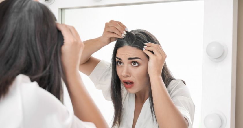 Отличный способ борьбы как с седыми волосами, так и с отросшими корнями — тонирующие спреи для волос. Такое средство за пару секунд замаскирует проблему, сохранив стойкость до следующего мытья.