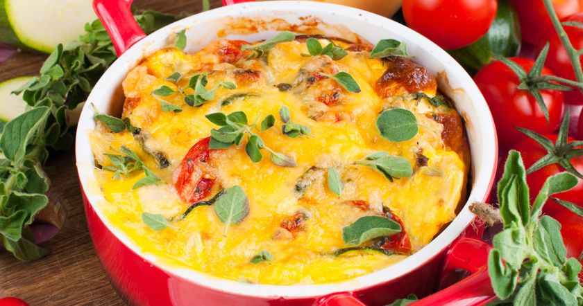 - Достать форму, посыпать натертым сыром и отправить дальше в духовку на 10-15 минут.