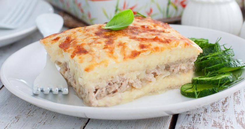 Многие даже во взрослом возрасте помнят вкус нежной картофельной запеканки с мясным фаршем, которую давали в детском саду. Приготовить такую же несложно. Для блюда из детства понадобятся простые ингредиенты. В оригинальном рецепте, согласно технологической карте, фарш делается из говядины, но в целях экономии его можно заменить и куриным.