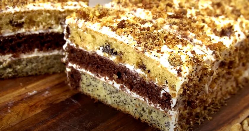 Когда не хочется тратить время на поочередное выпекание коржей для торта в духовке, их можно легко запечь одновременно на одном противне. Именно так готовится торт "Королевский", который имеет нежную текстуру, насыщенный вкус и аромат. Этот недорогой десерт примечателен тем, что состоит из трех разных по содержанию коржей: один – с какао, другой – с маком, а третий – с изюмом. Крем для торта делается очень легко путем простого смешивания ингредиентов.