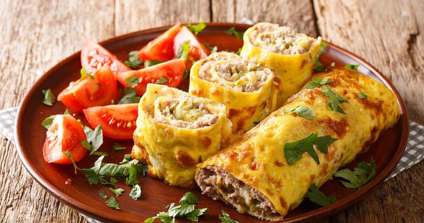 Бризоль из фарша на сковороде – это яичный блинчик с сочной мясной начинкой. Чтобы приготовить это блюдо, не нужно много времени проводить на кухне – достаточно будет 30 минут. Фарш подойдет любой – из говядины, свинины, птицы или их смешанные виды.