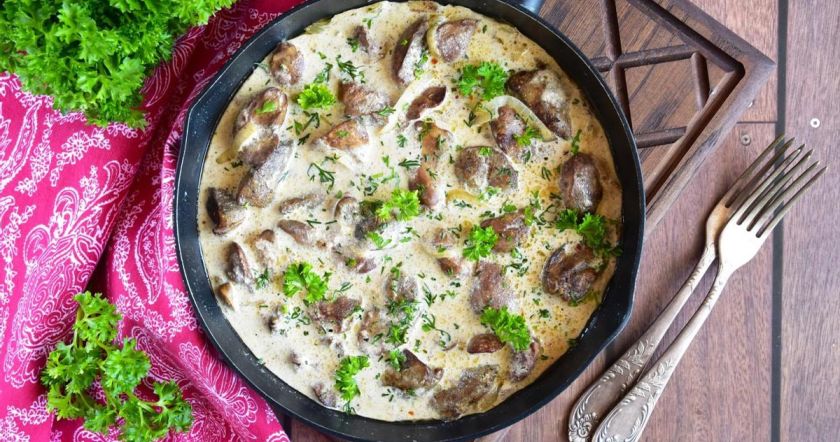 - Куриная печень в сливках готова. Блюдо можно подавать к столу.