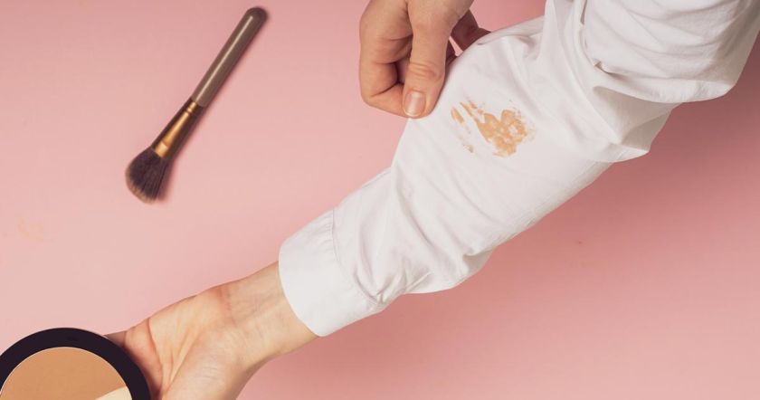 Выводите пятно как можно быстрее после того, как его поставили. Особенно если речь идет о жидких косметических продуктах, таких как тональный крем или хайлайтер