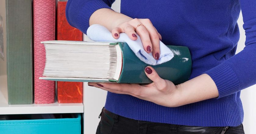 После того как все необходимые приборы для уборки были подготовлены, сразу может возникнуть соблазн вытереть пыль с первого попавшегося предмета на уровне глаз. Но этого делать не стоит. Для начала необходимо удалить пыль с люстры, светильников, верхних полок, шкафа и других труднодоступных поверхностей. Для более эффективной борьбы с пылью можно использовать универсальное чистящее средство. Его достаточно просто нанести на салфетку.
