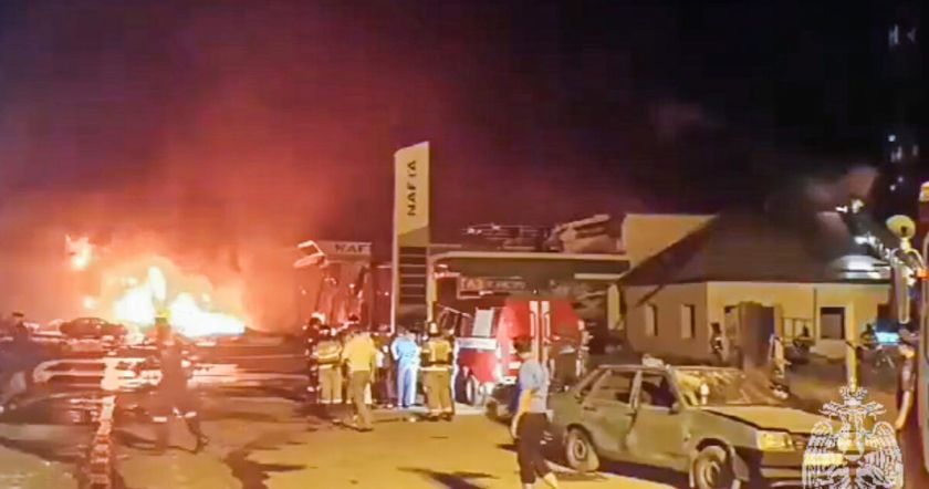 По версии СК, взрыв в Махачкале произошел из-за технического обслуживания автомобилей рядом с заправкой на перекрестке улицы Кулинская села Новокули и Федерального шоссе. На видео — обстановка возле одной из городских больниц.
