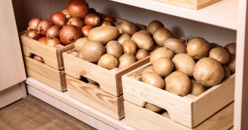Если хранить картофель рядом с отопительными приборами или в месте, где на него постоянно падает свет, овощ начнет вянуть или давать ростки. Чтобы уберечься от этого, лучше выбирать темное место. А еще — соседствовать с такими продуктами, как яблоки. А вот лук лучше убрать подальше, рядом с ним картофель будет пропадать
