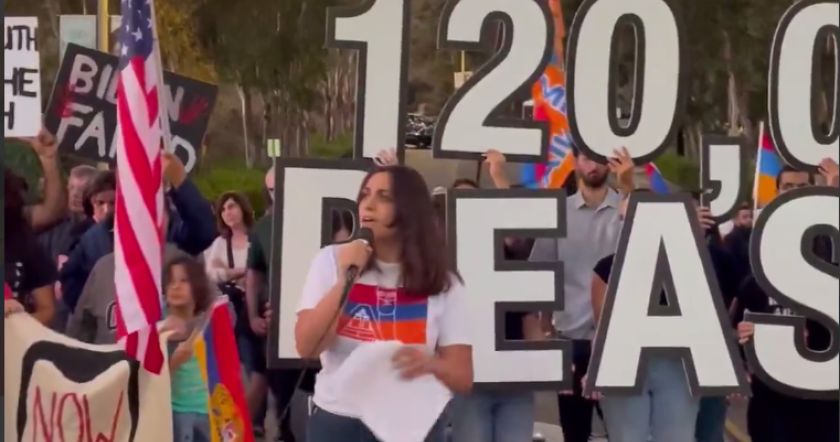 "Алиев и Эрдоган — террористы. Своим молчанием Джо Байден становится соучастником продолжающегося геноцида армян Нагорного Карабаха . Республиканцы, пора высказаться! Остановите геноцид!", – говорят участники акции протеста.