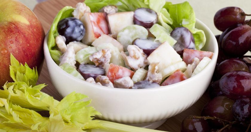 Выложите виноград и грейпфрут в миску с нарезанными листьями салата и добавьте туда нарезанные кубиком и очищенные от сердцевины грушу и яблоко . Финики разрежьте пополам и положите в салат.