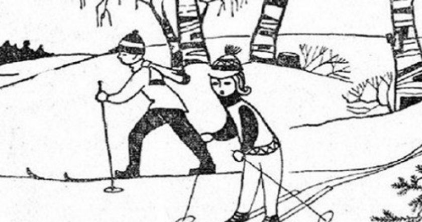 Эта картинка-загадка попалась нам в издании Golovolomka.temaretik.com. На первый взгляд это обычная иллюстрация из советского учебника: два лыжника, мальчик и девочка, выехали из пункта А в пункт В. Но не так все просто: где-то на этой картинке спрятался заяц. Найти его смог только 1% опрошенных, утверждает портал. Проверьте себя на ассоциативное мышление и попробуйте отыскать ушастого на черно-белом пейзаже. Если справитесь — вы молодец и выдающаяся личность.