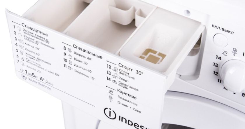 Самый маленький отсек, который обозначен звездочкой или другим символом - это отделение для кондиционера. На пластике также вы увидите надпись MAX - предел, который не стоит превышать при добавлении смягчающего средства для белья.