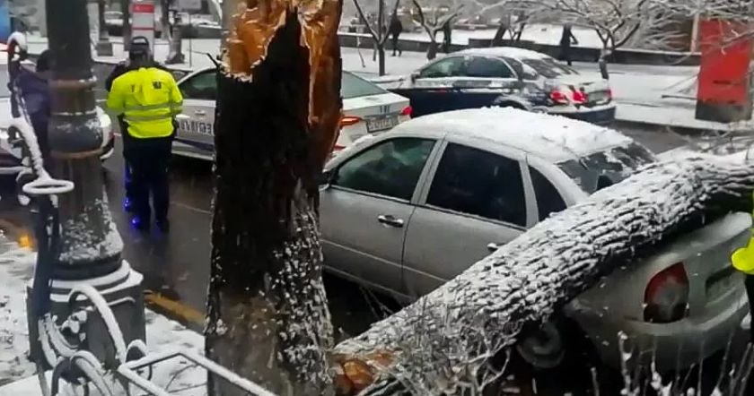 Инцидент произошел утром около 08:40 на перекрестке улиц Абовяна и Саят-Нова. Дерево сломалось и упало на три стоящие перед светофором машины.