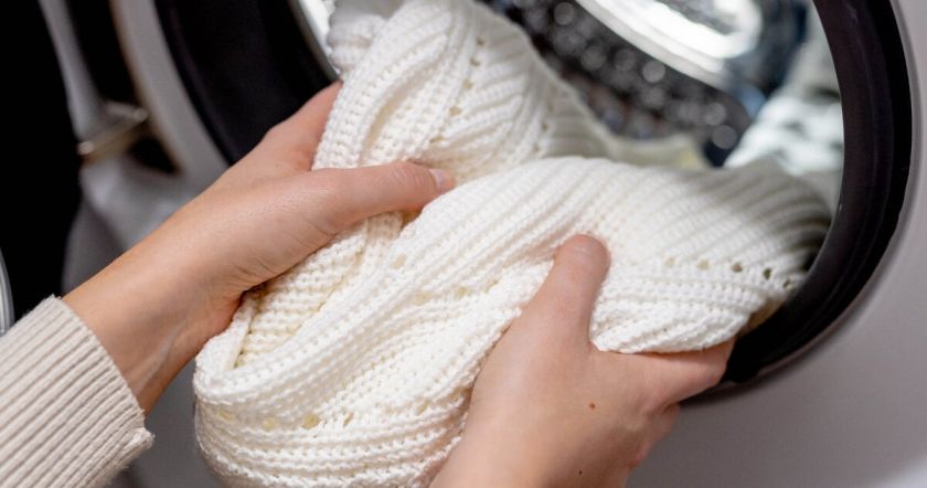 Используй мешок для стирки — как объясняет Дина, он значительно снижает риск появления растяжек и катышков, а также не дает вещи растянуться.
