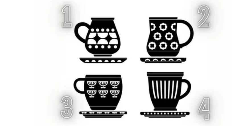 На этом рисунке вы видите всего четыре кружки, но они не одинаковы, поскольку имеют совершенно разный дизайн. Из какой бы вы хотели выпить кофе или чай? Когда вы примете решение, вы узнаете его скрытое сообщение в разделе результатов. Помните, второго шанса НЕ будет.