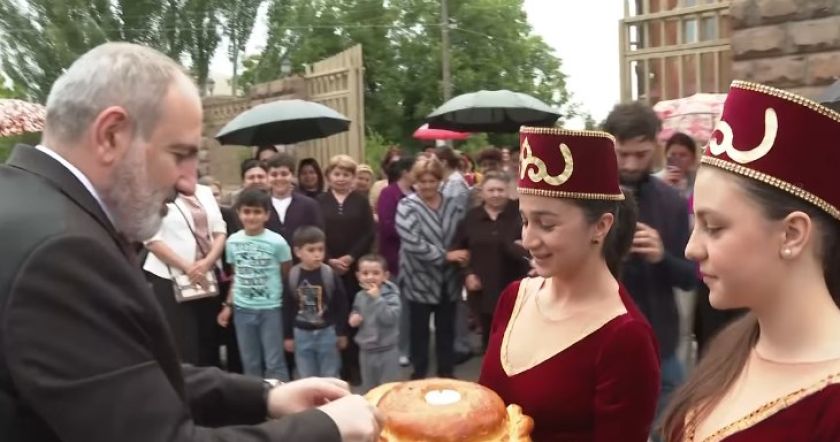 Премьер-министр Никол Пашинян вчера на своей странице в Facebook опубликовал видео, на котором видно, что он совершил незапланированный визит в село Бамбакашат. На видео хорошо видно, как жители села готовились к приему. Сначала премьер-министра встречают хлебом солью, который приподносят дети школьного возраста в костюмах. В официальном приветствии премьер-министра постоянно упоминается гостеприимство.